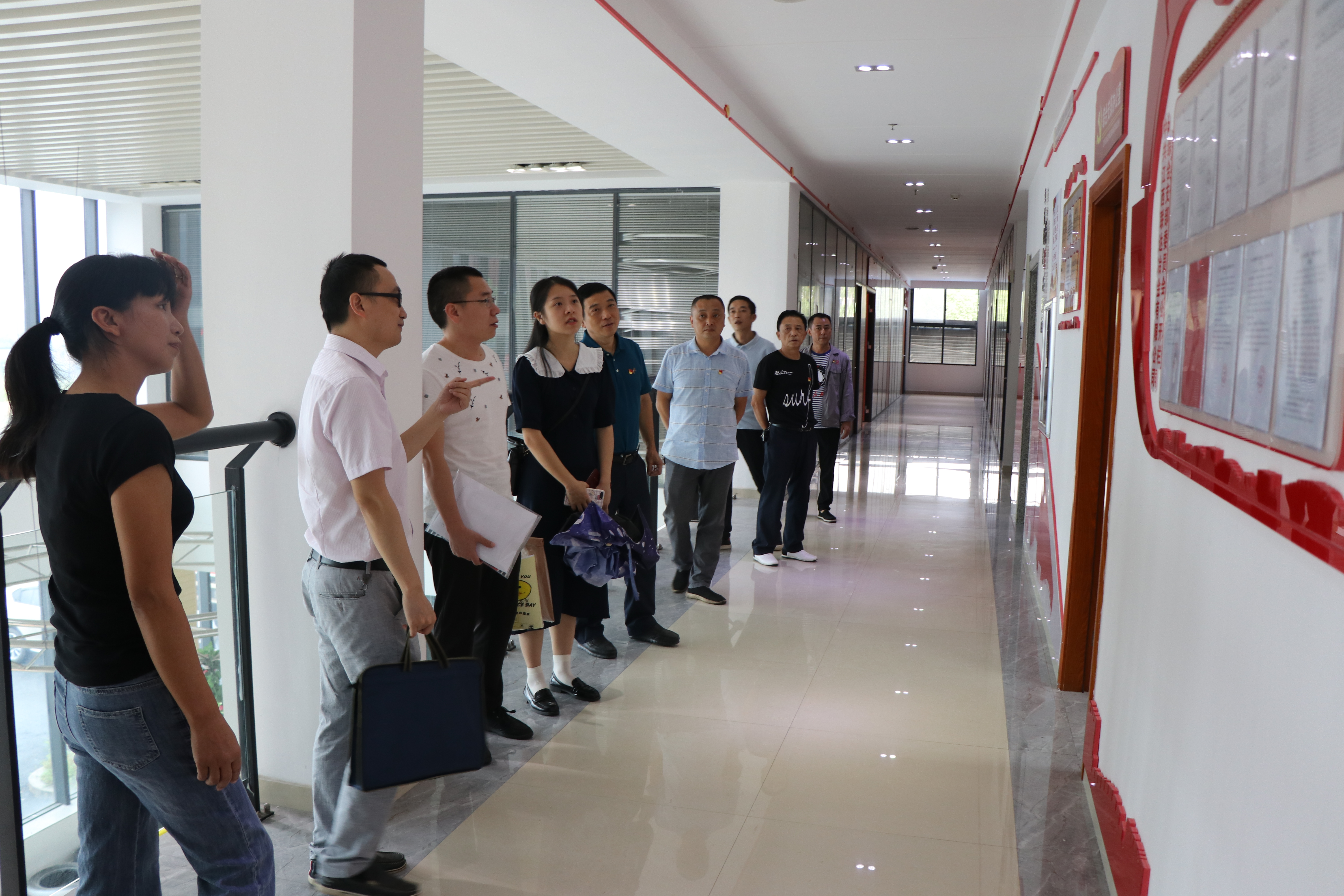 联达公司党委书记戴建萍、党委委员周国安,工会主席彭国建,联创公司总经理张楠,综合党支部书记肖勇,支部委员肖松柏、肖莉热情地迎接了他们一行。