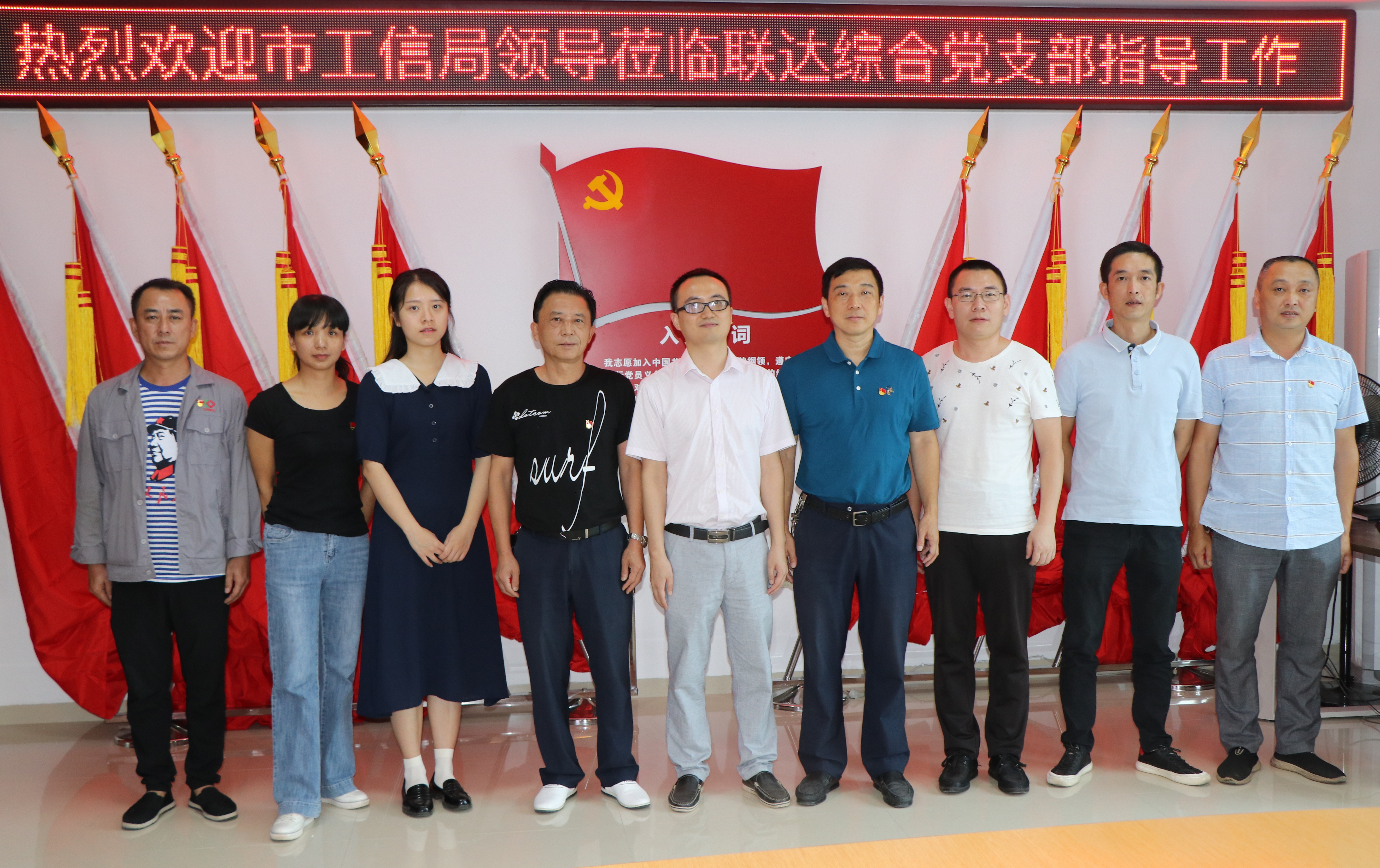 94上午,萍乡市工信局机关党委专职副书记龙勃、组织宣传科科长万德标、组织宣传科四级主任科员钟怡专程莅临联达公司综合党支部检查指导党建“三化”建设工作。